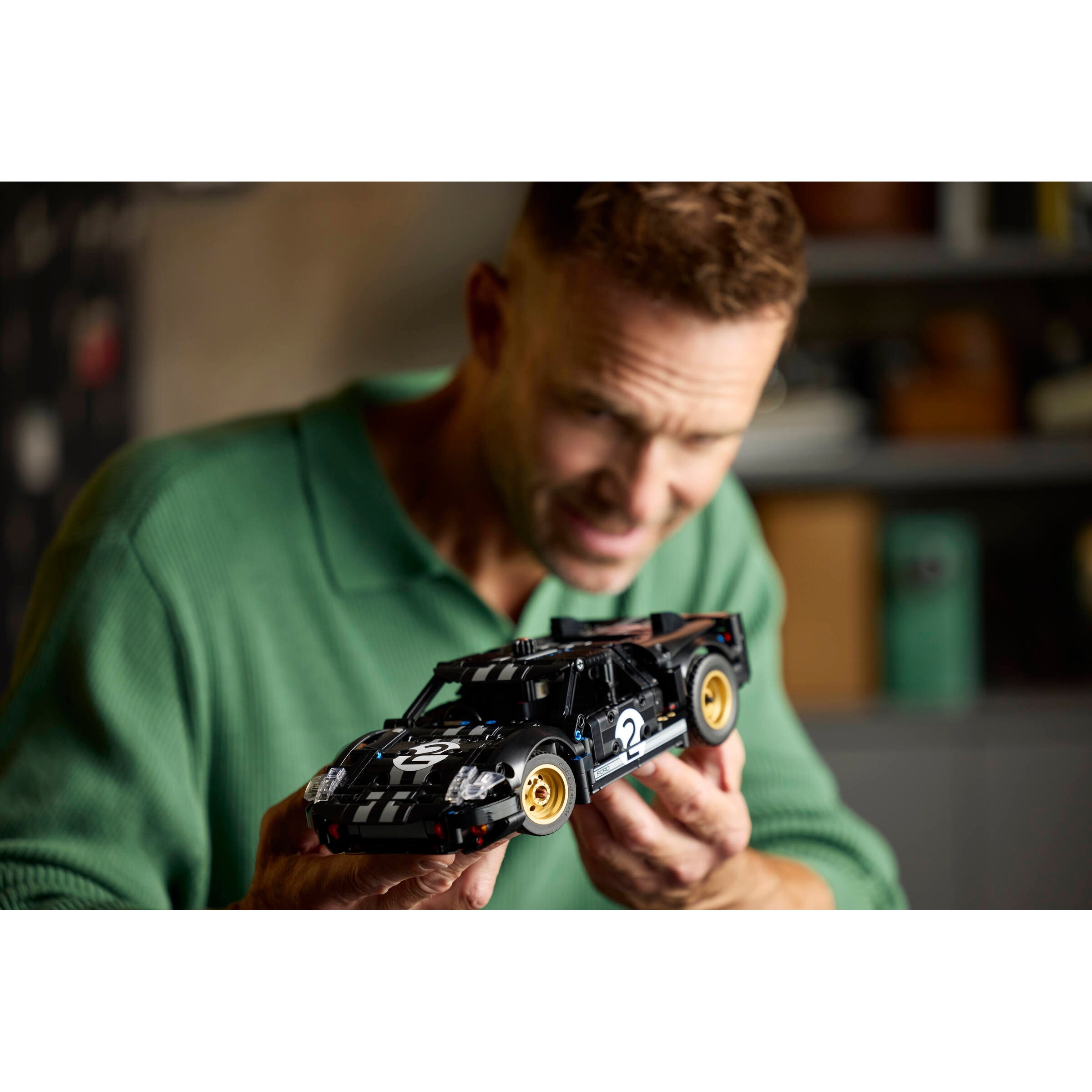 REALISTIC 1966 Ford GT40 MKII FEATURES – Explorethe iconic racing car’s realistic functions, using the knob on top to steer, opening the doors and pressing the lever inside to open the hood