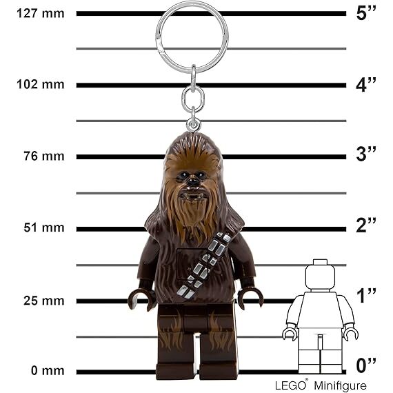 Team up with an iconic Wookiee to explore the galaxy with this Chewbacca Key Light. A super gift idea for Star Wars fans aged 6 and up, it features a large version of the Chewbacca LEGO minifigure with a posable head, arms, hands and legs and bright LED lights in each foot – simply press and hold the button on the chest to activate the lights. This metal key ring with light is a fantastic Star Wars accessory for kids and attaches easily to a bag, backpack or keys. Batteries are included.”,”featuresText”:”Team up with an iconic Wookiee to explore the galaxy with this Chewbacca Key Light. A super gift idea for Star Wars fans aged 6 and up, it features a large version of the Chewbacca LEGO minifigure with a posable head, arms, hands and legs and bright LED lights in each foot – simply press and hold the button on the chest to activate the lights. This metal key ring with light is a fantastic Star Wars accessory for kids and attaches easily to a bag, backpack or keys. Batteries are included.