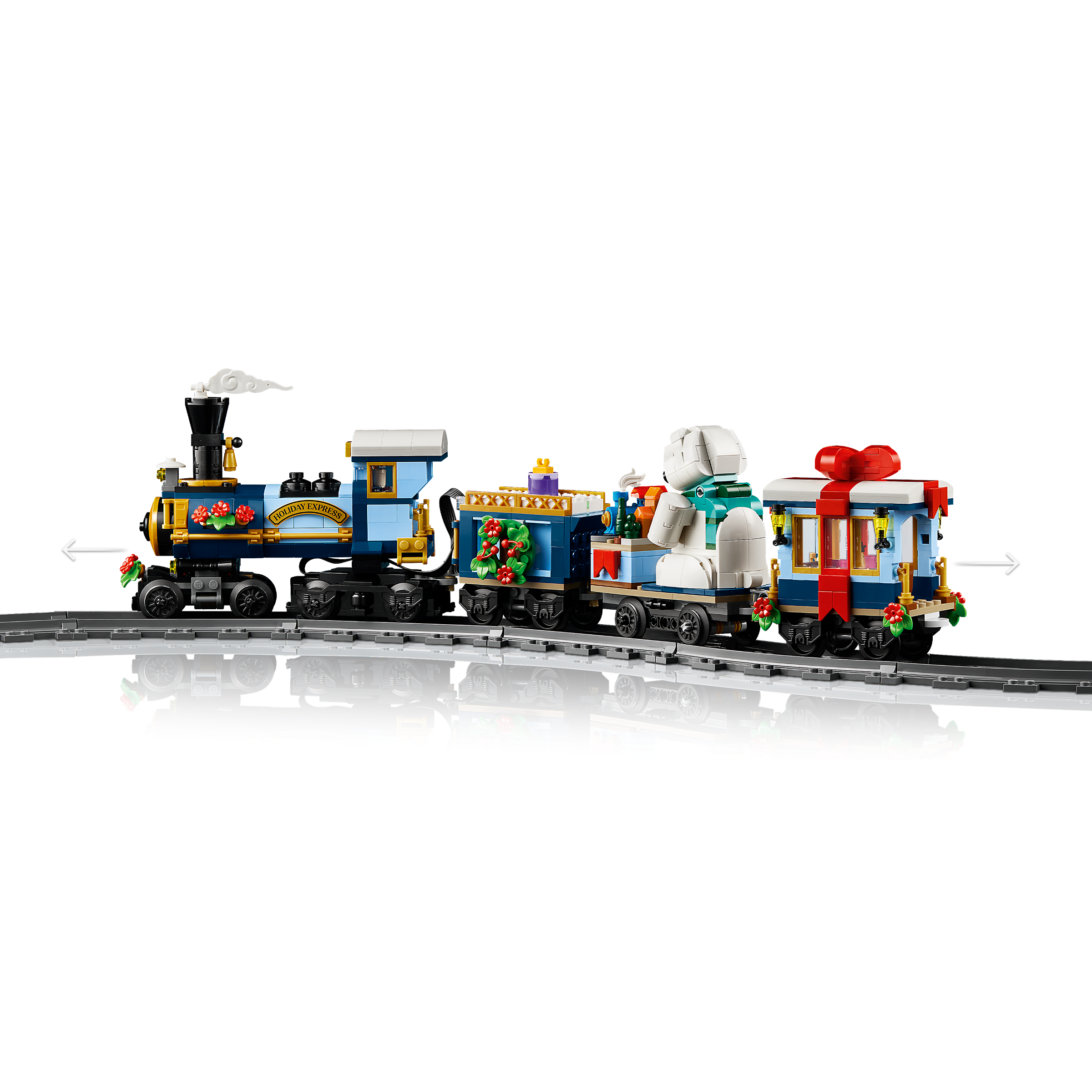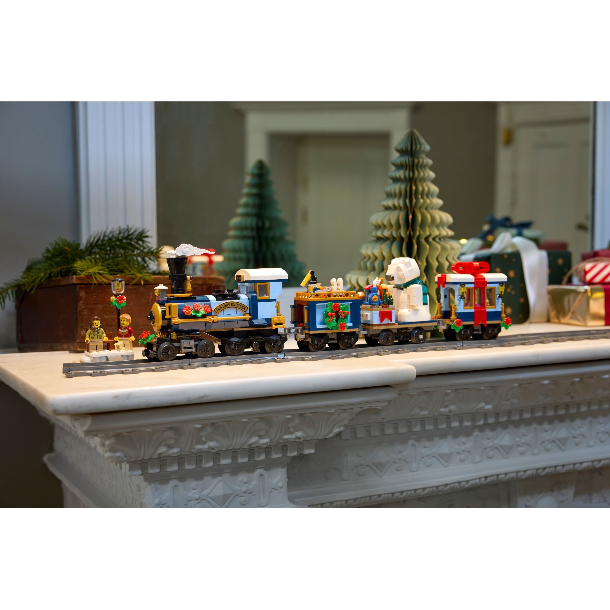 The LEGO Icons Holiday Express Train (10361) model train set has arrived. Craft a locomotive with a bobbing smokestack, coal tender, flatcar carrying a bell-ringing polar bear and an end car with a furnished interior. This adult building kit also includes 4 minifigures and a passenger platform with a bench and lamppost, plus miniature toys including, for the first time in a retail LEGO set, a 3D-printed train piece. Build the track around your holiday tree and add the LEGO Powered Up kit (sold separately) to motorize the locomotive.