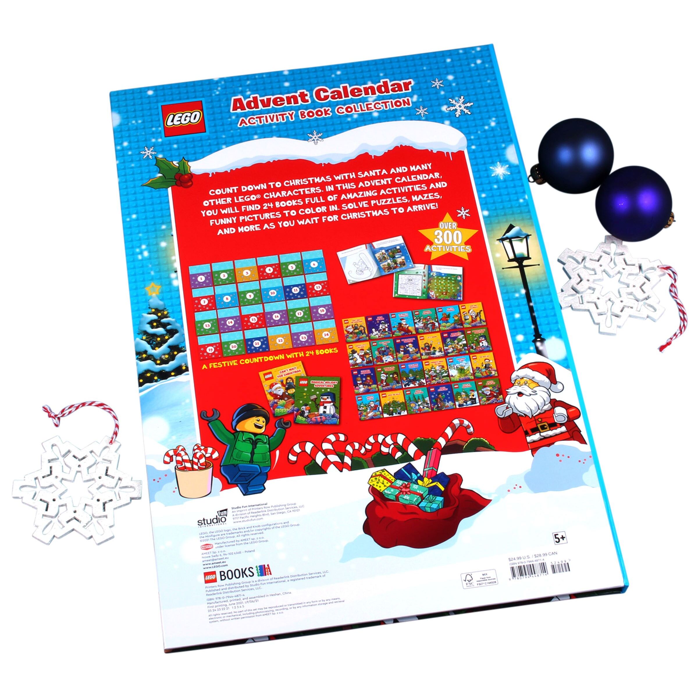 The LEGO Advent Calendar lets brick fans count down to Christmas Day with a special treat for each of the 24 December days building up to it. This hardcover calendar features 24 pockets, each containing a removable mini LEGO book. The 24 delightful books each have 16 pages crammed with exciting activities, puzzles and coloring pages to enchant passionate LEGO fans. This really is the perfect way to get into the holiday spirit!”,”featuresText”:”The LEGO Advent Calendar lets brick fans count down to Christmas Day with a special treat for each of the 24 December days building up to it. This hardcover calendar features 24 pockets, each containing a removable mini LEGO book. The 24 delightful books each have 16 pages crammed with exciting activities, puzzles and coloring pages to enchant passionate LEGO fans. This really is the perfect way to get into the holiday spirit!