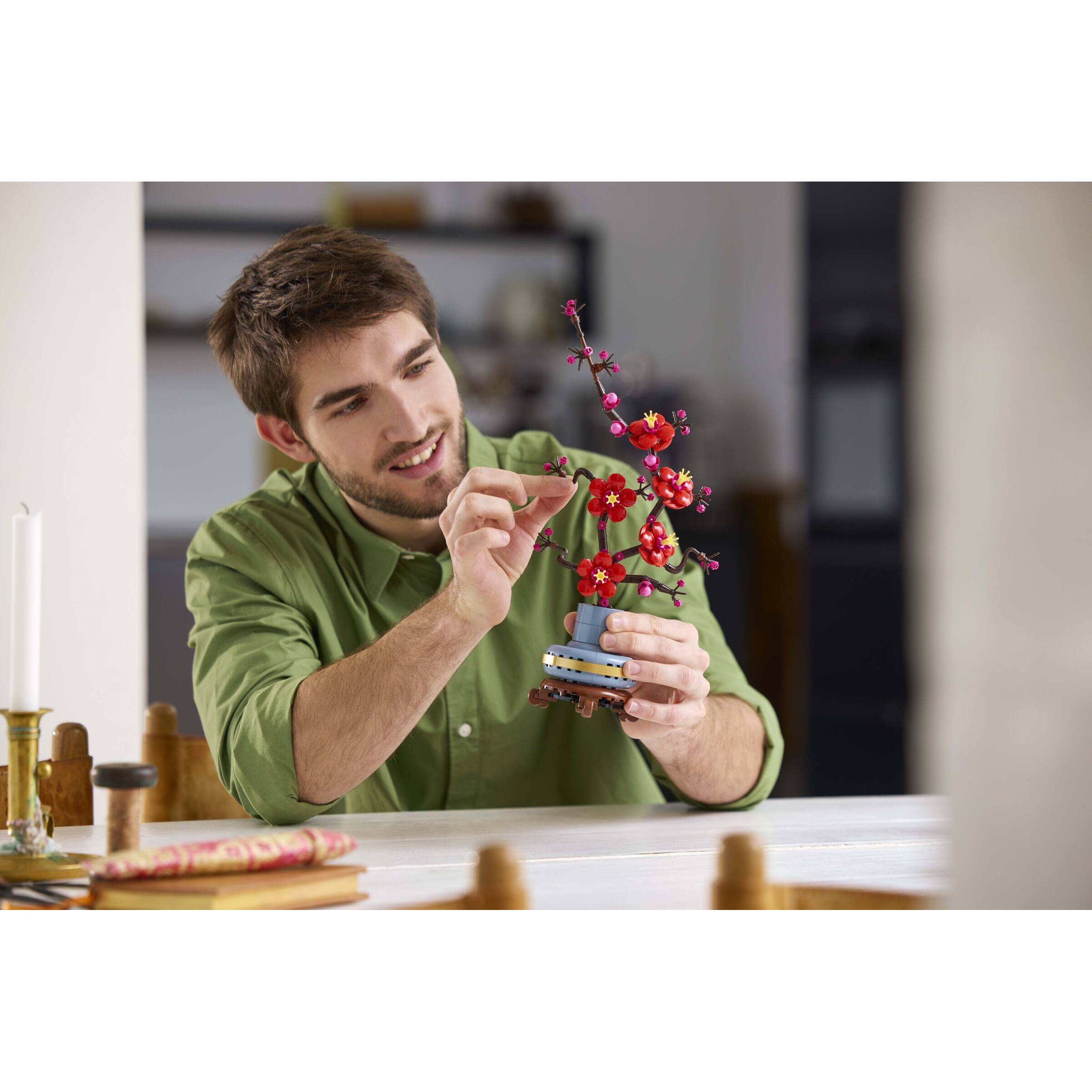 Flower decor building set for adults – Take time out or join friends and family for a relaxing building experience with the LEGO Botanicals Plum Blossom flower building project