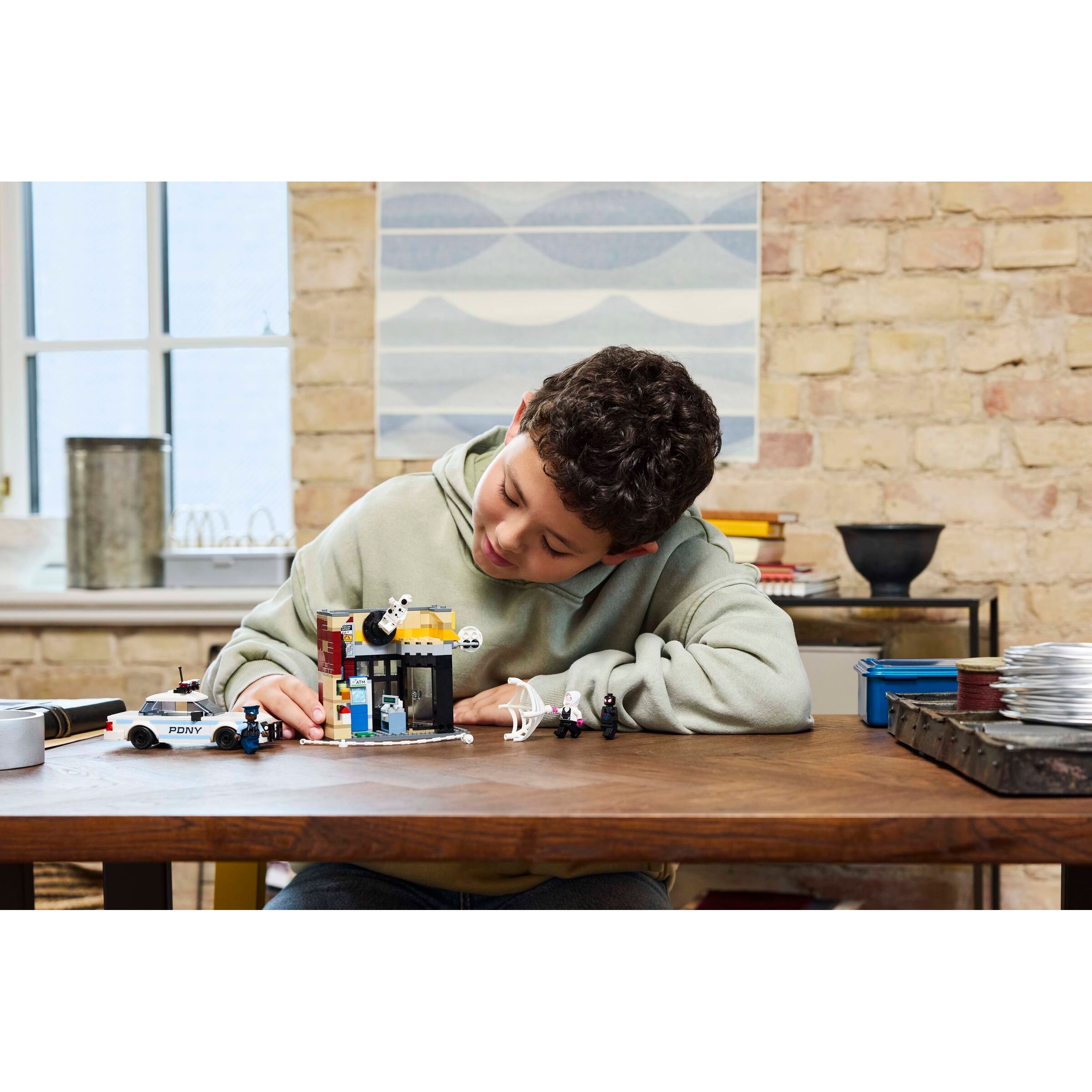 The Spider-Man playset comes with 4 minifigures: Miles Morales, The Spot, Gwen Stacy and Officer Jefferson. The convenience store has an exploding-wall feature that allows the ATM to be removed. Accessories include a long, flexible web rope and a flexible web that is large enough to encase a minifigure. The police car opens to allow 2 minifigures to be placed inside. For added digital fun, builders can zoom in, rotate models in 3D and track their progress using the fun, intuitive LEGO Builder app.