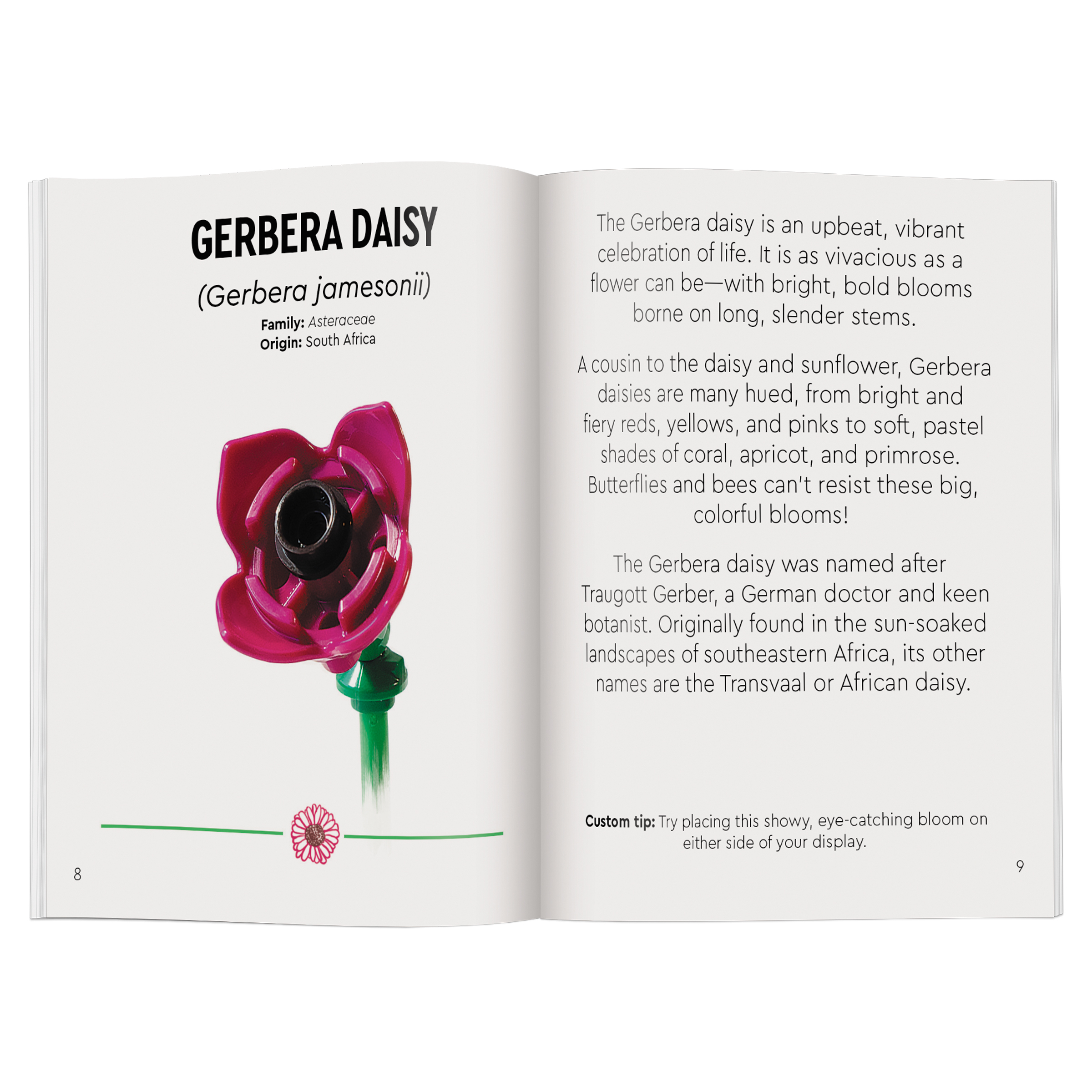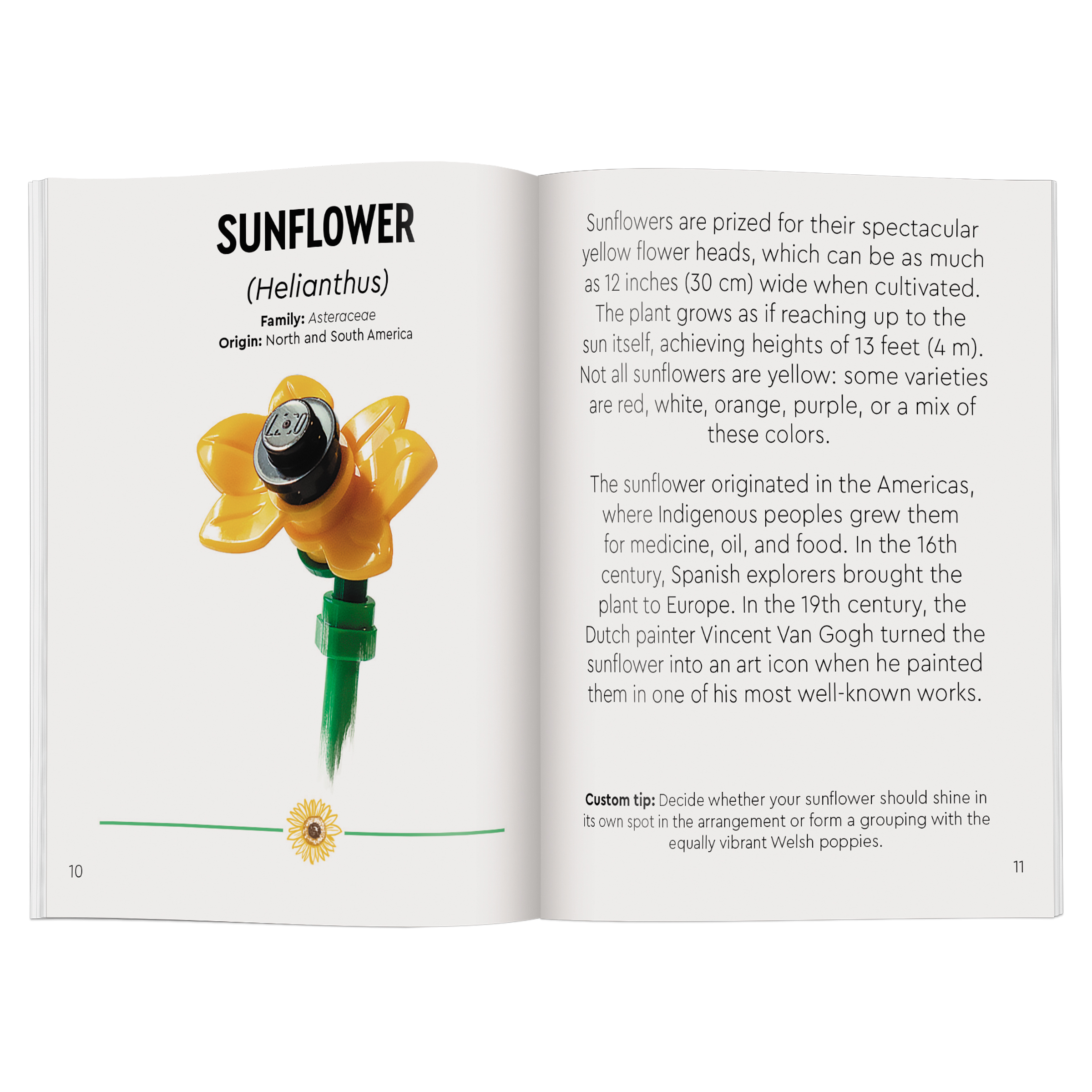FUN DETAILS – The building kit includes a 32-page book with instructions for creating the exclusive mini model and fun facts, and the bouquet becomes floral desk or shelf decor once it’s complete